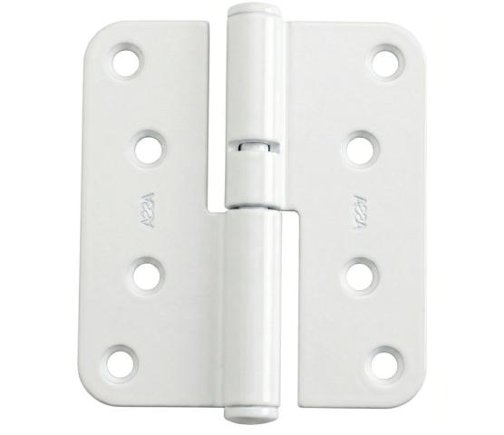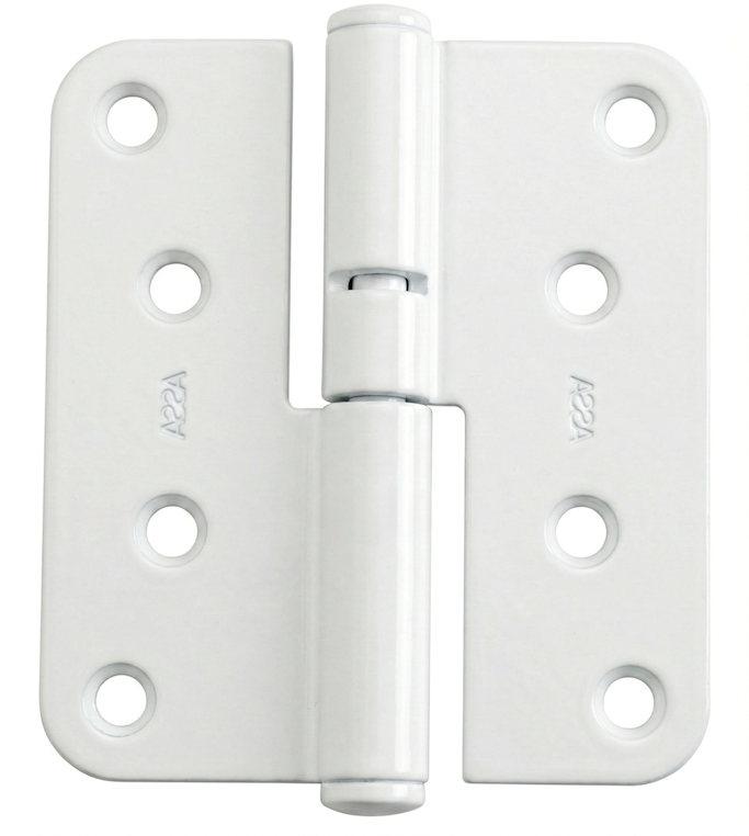 Hvit lakkert hengsel til Nordan balkongdør produsert før 2005.
